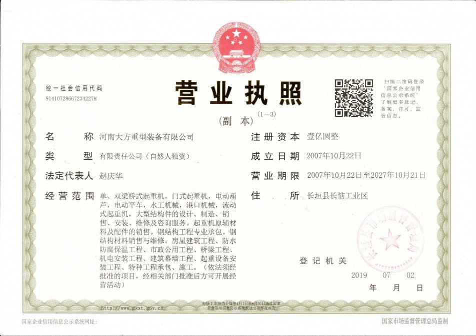 河南省大方重型機(jī)器有限公司始建于2006年,總占地面積85萬(wàn)平方米,員工近2000人,是以起重機(jī)械、鋼結(jié)構(gòu)兩大業(yè)務(wù)板塊為主,起重設(shè)備運(yùn)輸、安裝等相關(guān)服務(wù)為輔的大型企業(yè),主導(dǎo)生產(chǎn)單、雙梁橋門(mén)式起重機(jī)、電動(dòng)葫蘆等,并承接鋼結(jié)構(gòu)工程,為機(jī)械、冶金、電力、鐵路、礦山、石油、化工等行業(yè)配套服務(wù),產(chǎn)品出口至俄羅斯、東南亞等60多個(gè)國(guó)家和地區(qū)。在社會(huì)各界的信任和幫助下,經(jīng)過(guò)十余年的發(fā)展,我們的產(chǎn)品年銷(xiāo)量突破了5萬(wàn)臺(tái),鋼結(jié)構(gòu)產(chǎn)量8萬(wàn)噸,2019年銷(xiāo)售收入19.1億元,公司綜合實(shí)力穩(wěn)步上升。......